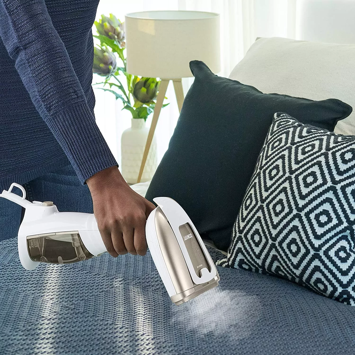 Праска працює за принципом контактного нагрівання: розігріта підошва притискається до тканини і під тиском вирівнює волокна. Результат - чіткі складки, ідеальна гладкість. Але для цього потрібна дошка, певний час на розігрів і постійний контроль температурного режиму.